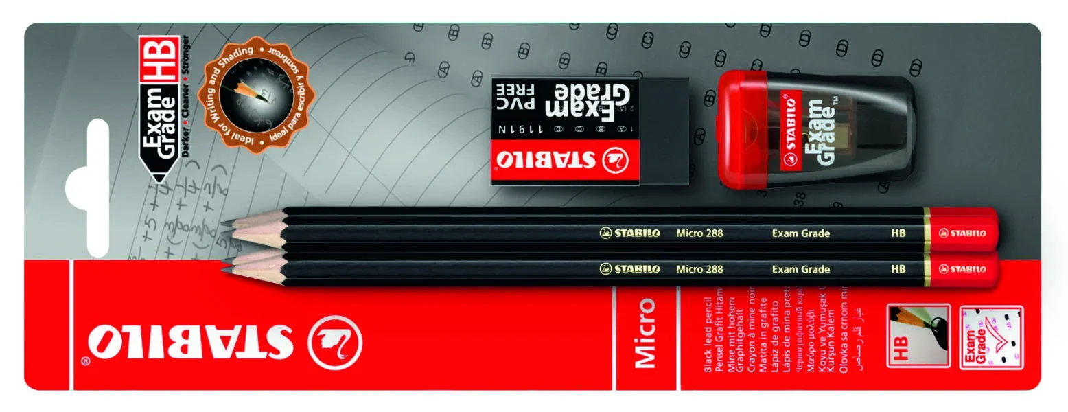 STABILO Exam Grade – 4 HB Pencils + Eraser + Sharpener